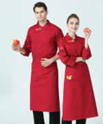 肩地图刺绣后厨厨师长中餐厅工作服西餐厅长袖厨师服涤棉上衣国旗三杠HY-C0202016