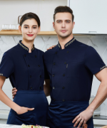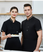 仿尼方格领厨师服短袖上衣YLYS-2020-26
