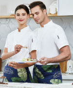 贡丝锦一颗布扣酒店厨师服短袖上衣YLYS-2020-24