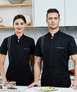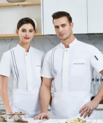 单排双灰边涤棉厨师服短袖上衣YLYS-2020-19