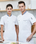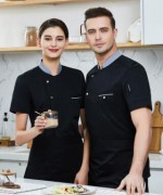 涤棉灰领两扣酒店厨师服短袖上衣YLYS-2020-15