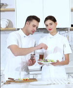 涤棉绣三角酒店厨师服短袖上衣YLYS-2020-32