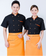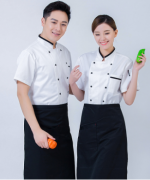 西餐厅中餐厅酒店餐饮厨房后厨厨师长短袖厨师服短袖宽条领HY-C0201029