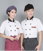 酒店餐饮厨房后厨厨师长短袖厨师服上衣三道杠半袖21-C0201005