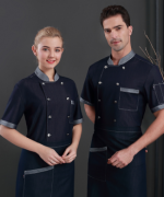 餐饮厨房后厨牛仔双排短袖厨师服牛仔双排98-C0201027