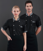 餐饮厨房后厨短袖厨师服拼领98-C0201015